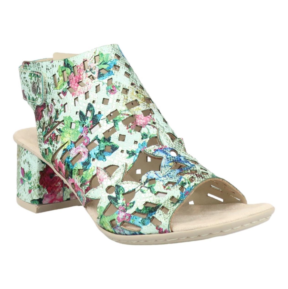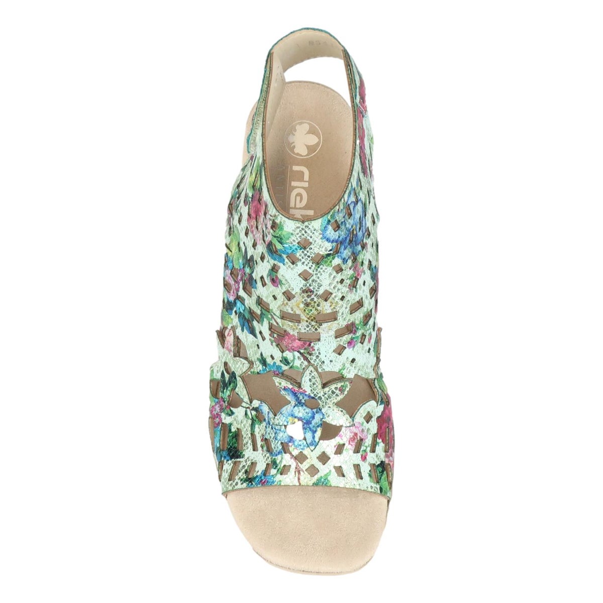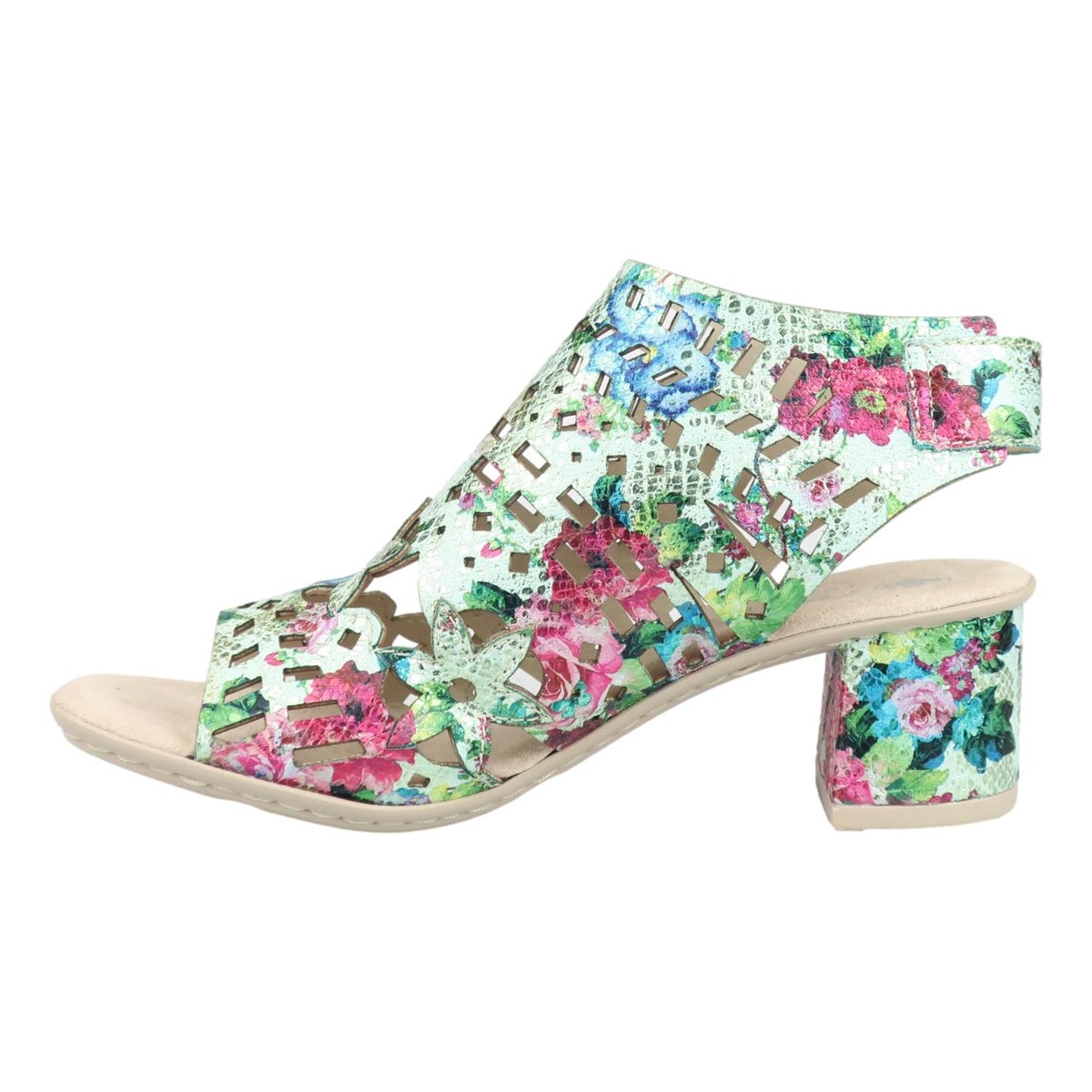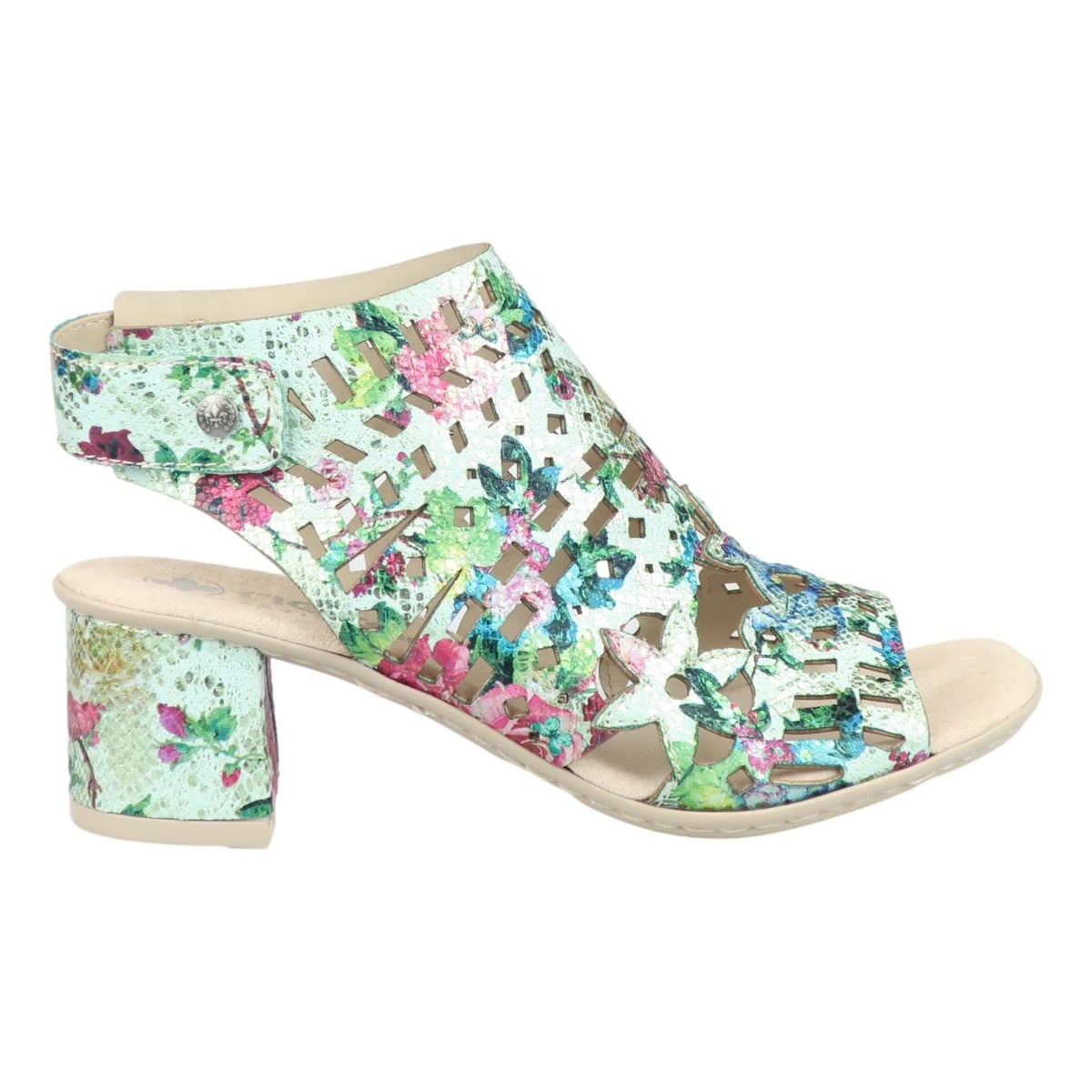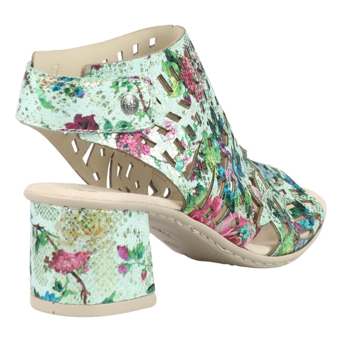 Tyylikäs uutuus sandaali by Rieker. Päällinen on näyttävän näköinen ja mukavan pehmeä. Pehmustettu sisäpohja viimeistelee mukavuuden. Kanta on juuri sopivan korkuinen ja tarraremmillä kengät on helppo pukea. Todella kauniit kengät kesän menoihin.
