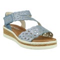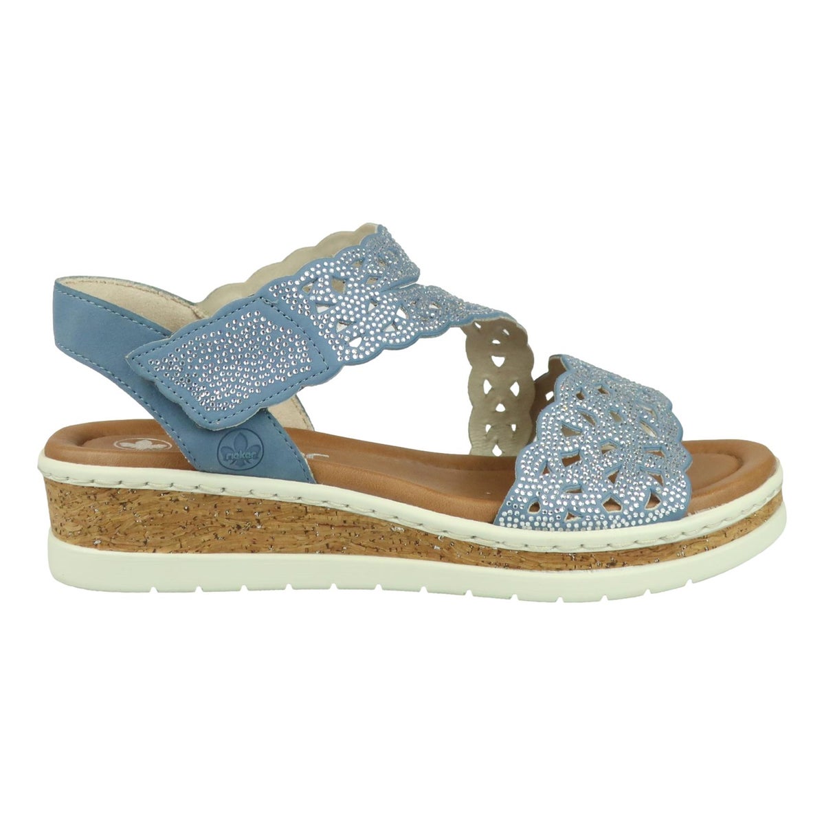 Kauniit vaaleansiniset Rieker sandaalit todella pehmeällä sisäpohjalla ja säädettävillä tarraremmeillä. Raikas sininen on helppo yhdistää kevään vaatteisiin ja nämä käyvätkin niin lomareissuille, töihin kuin kesän arkimenoihin. Takaremmi tuo mukavasti tukevuutta ja timantit ihanasti ilmettä.