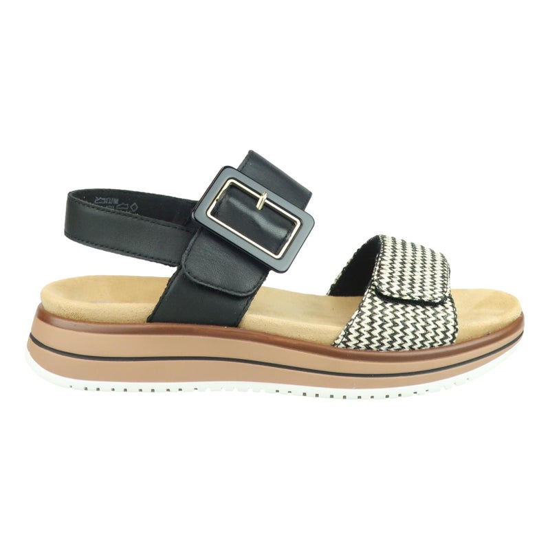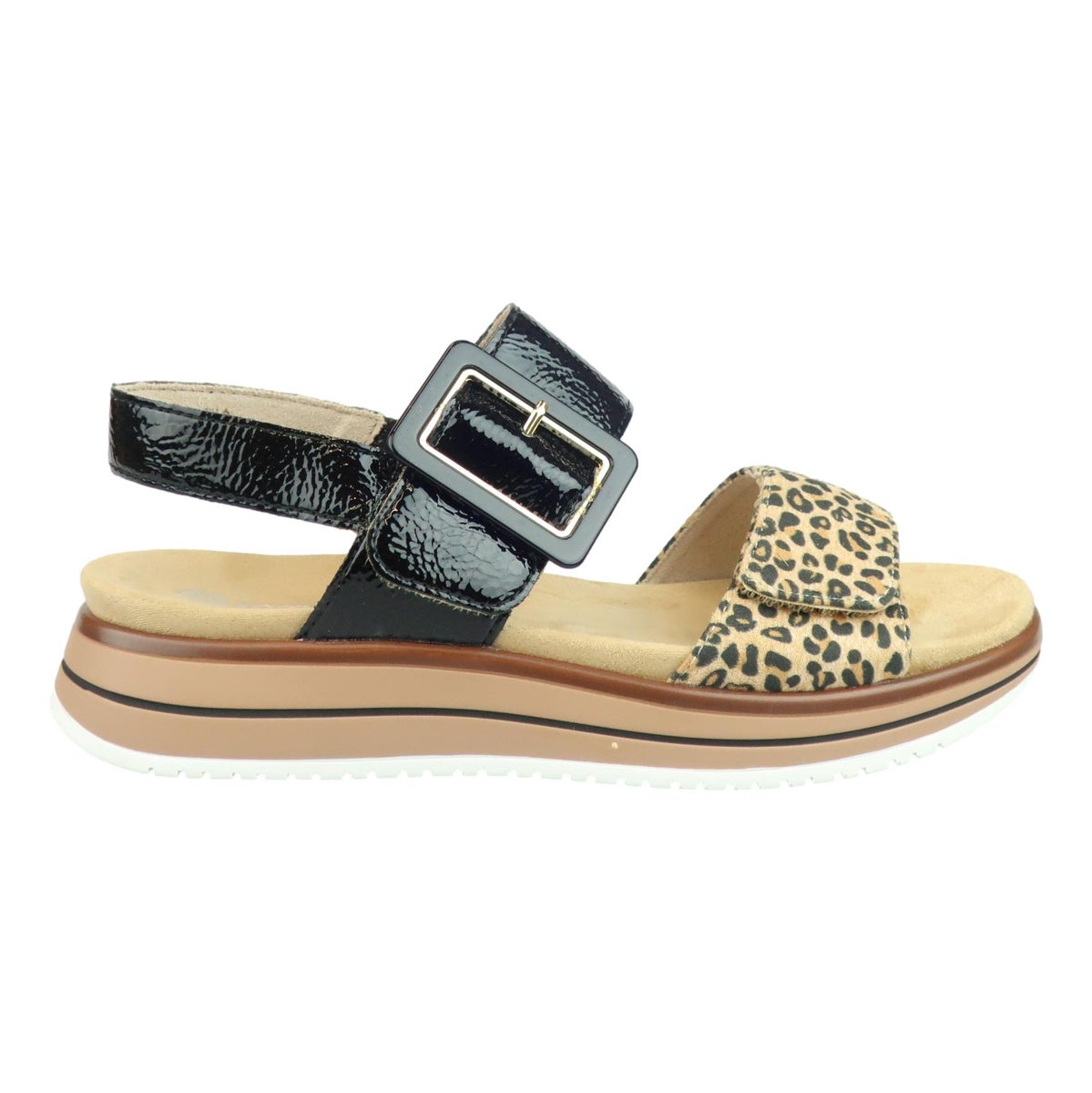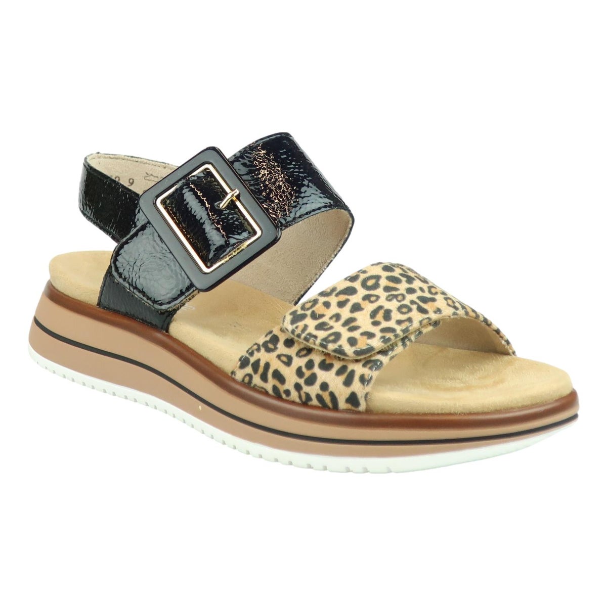 Todella kaunis Remonte sandaali pienellä kiilapohjalla ja ripauksella leopardia. Pohja on kevyt ja todella pehmeä jalkaan. Päällisen koristeet antavat mukavasti ilmettä kengälle. Helppo pukea tarralla säädettävien remmien ansiosta (solki vain koriste) jalkaan. Erinomainen valinta kevään aurinkomatkoille ja tulevan kesän menoihin.